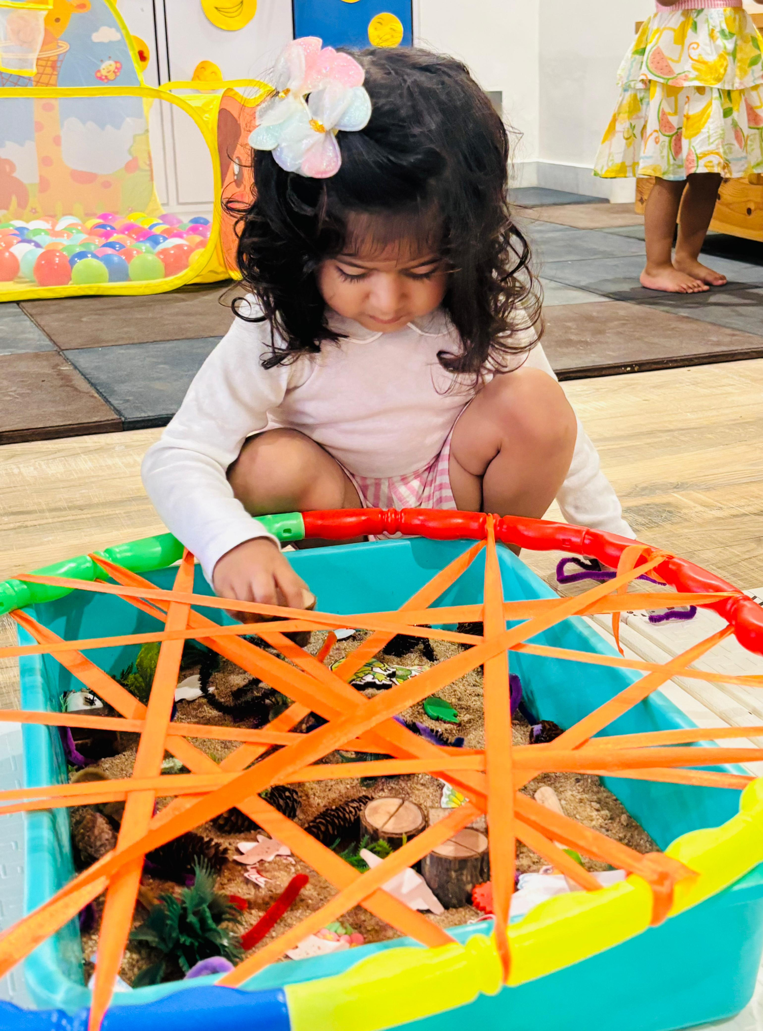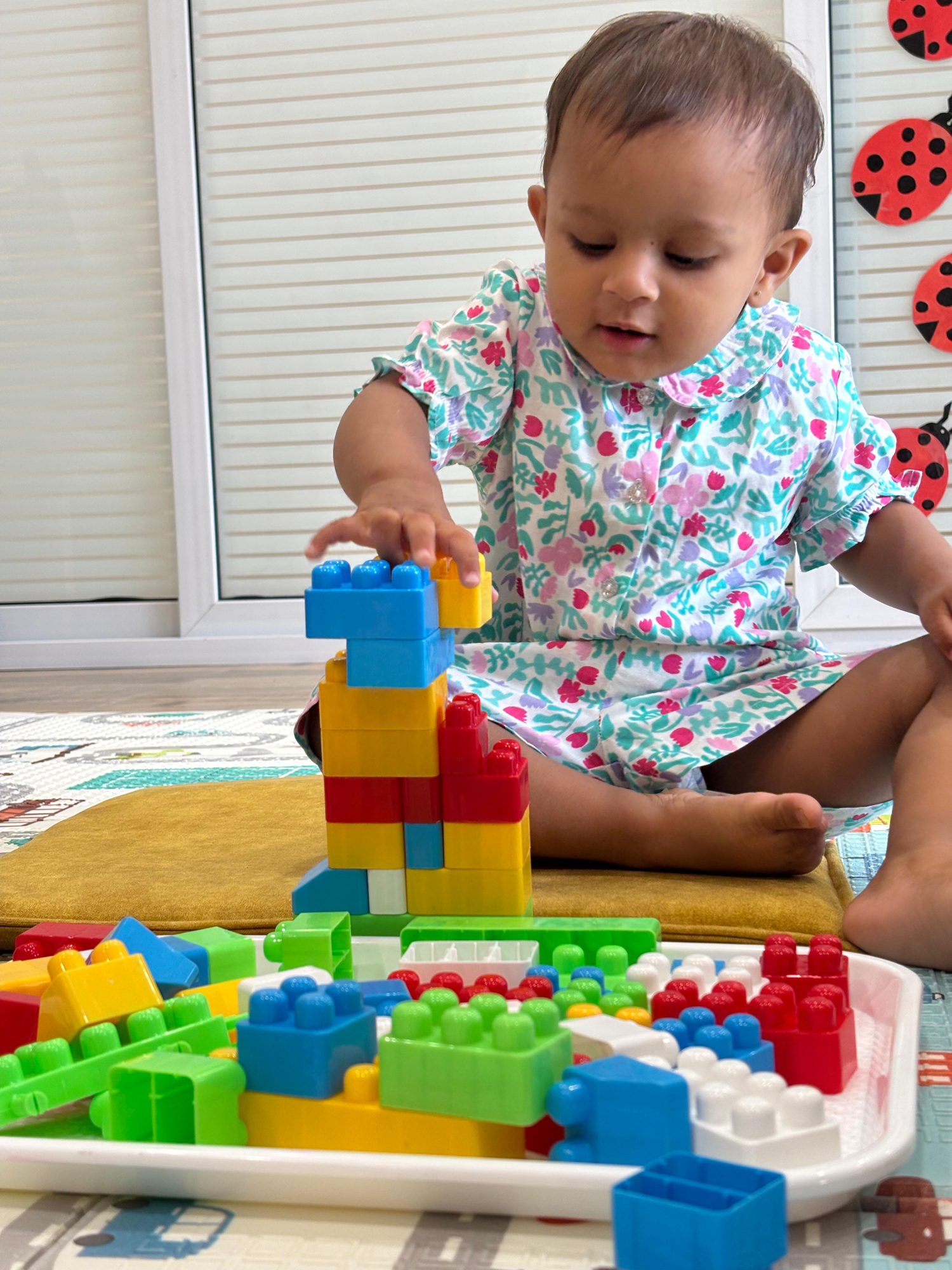Our environments are thoughtfully prepared to invite curiosity like the block area waits to be balanced, art area waits for the colors to be mixed, Outdoor area waits for water to flow and mud to touch the hands of childrenTeachers observe quietly, ready to support but never interrupt the child’s moment of discovery.
