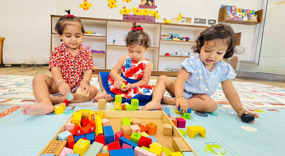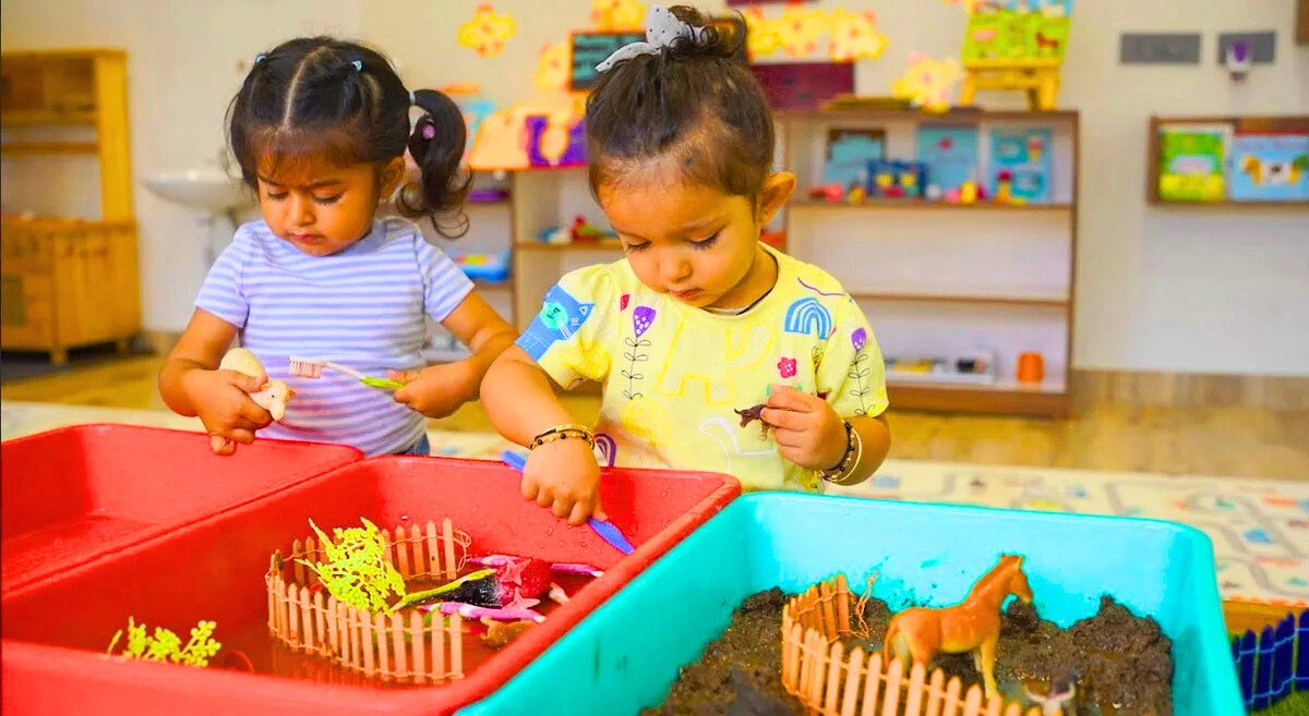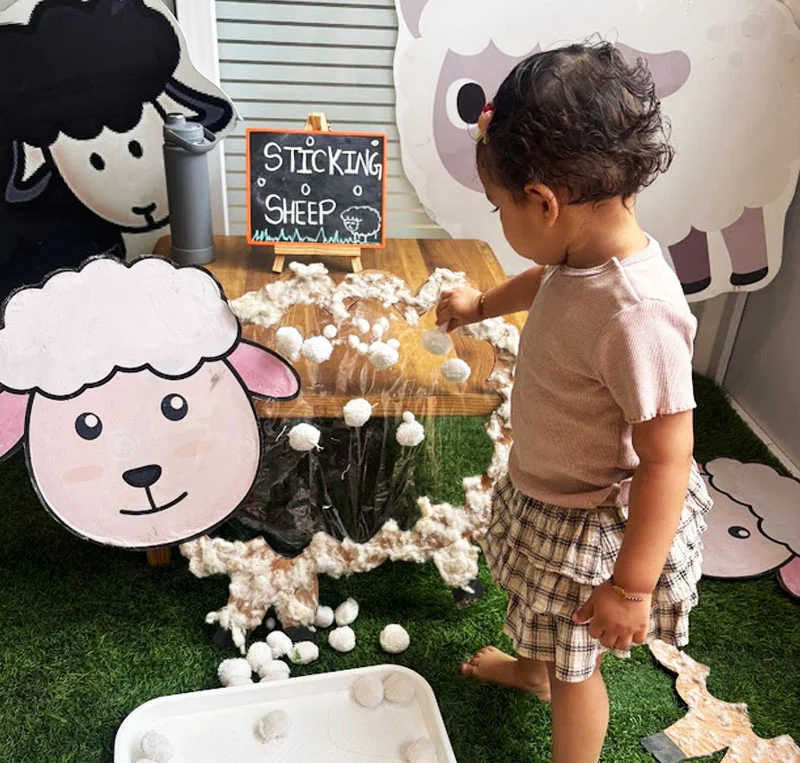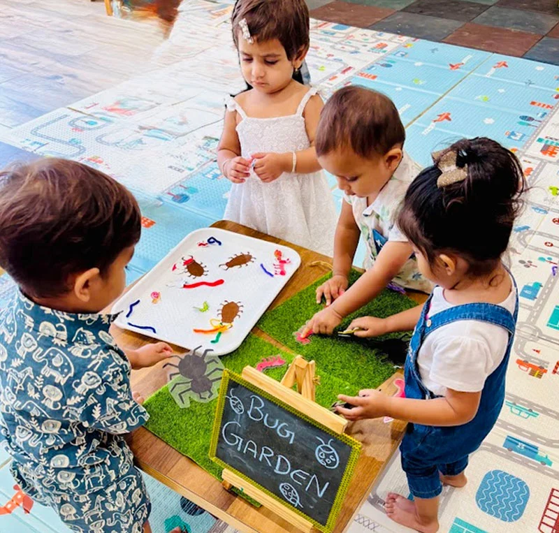 Station Time is planned by educators based on the theme of the month. 3 to 4 activities are laid down which are basically focused on enhancing sensory & fine motor skills of the child.
