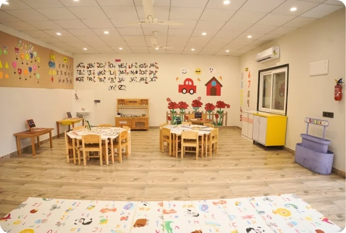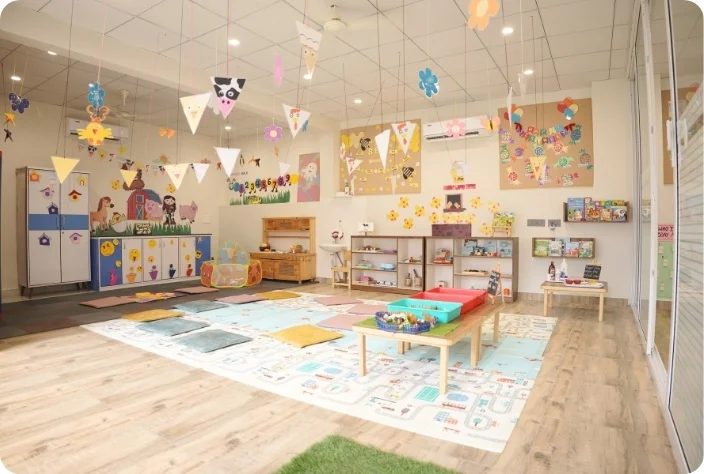 Our school has all big size classrooms with rounded edges furniture, toddler-safe flooring, and child-height amenities ensure a secure, nurturing space where kids can move freely and confidently. Our handpicked books and toys are placed in such a manner that they give plethora of opportunities for adventure and exploration.